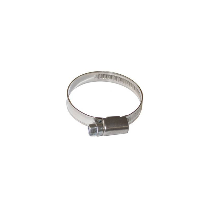 Tipo DIN 3017 con nastro e cassetto in acciaio INOX 430, W 2, vite zincata con buona resistenza all'ossidazione. Nastro imbutito, bordi arrotondati e rialzati. Vite con esagono mm 7.