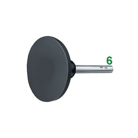 Attacco cilindrico. Corpo e piatto in gomma. Sul piatto si applicano i dischi abrasivi flessibili AUTOADESIVI artt. 341096/341134. Con questi dischi si smeriglia, si pulisce e si lucida, rapidamente e perfettamente.